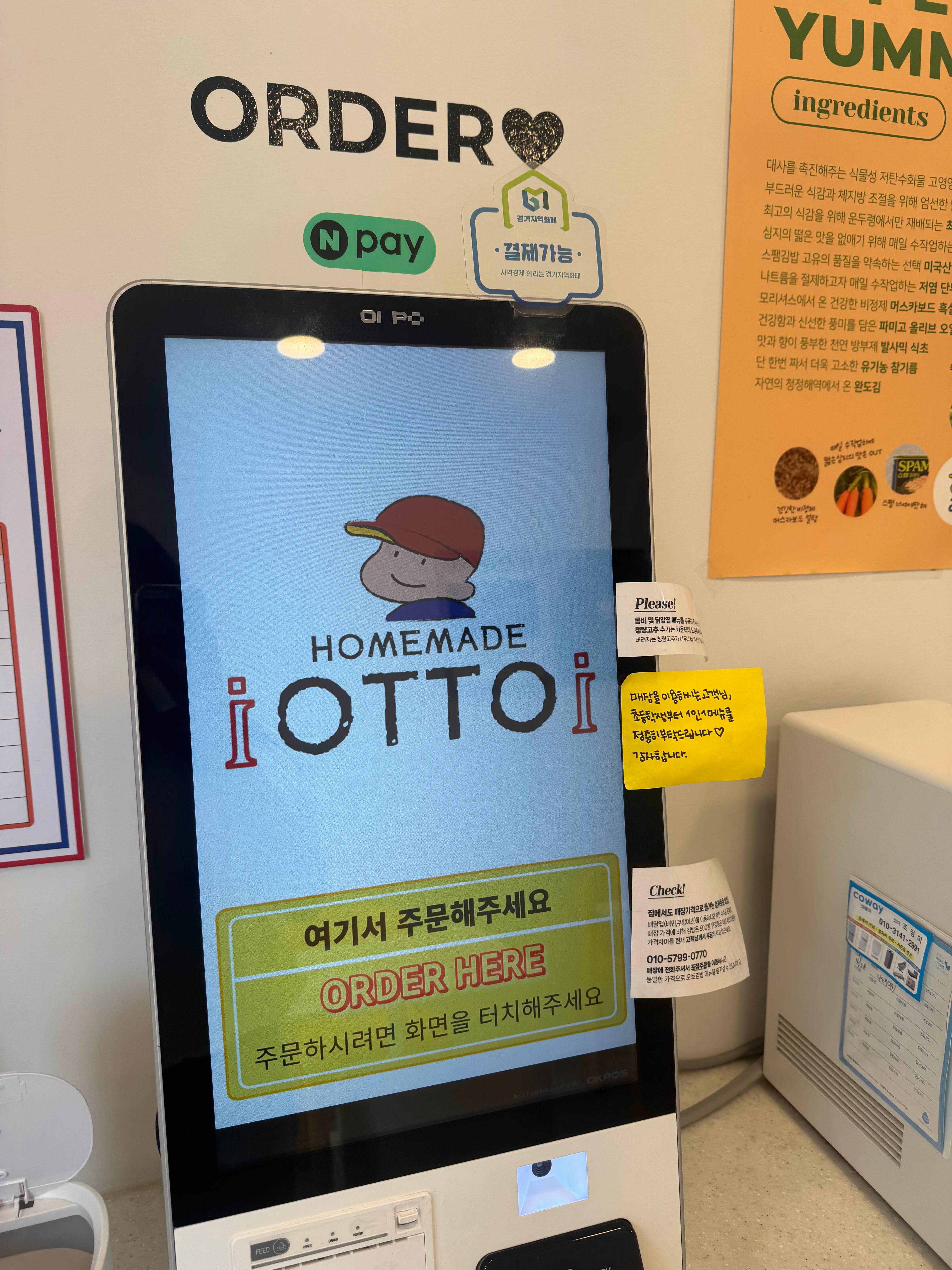 키오스크로 주문할 수 있었고 N페이 결제도 가능해서 편리했다.