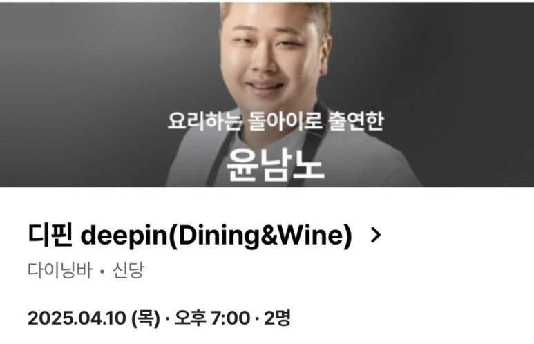 그 흑백요리사에 나오셨던 윤남노 셰프님이 운영하는 곳이 바로 이 디핀 deepin이랍니다. 🍽️