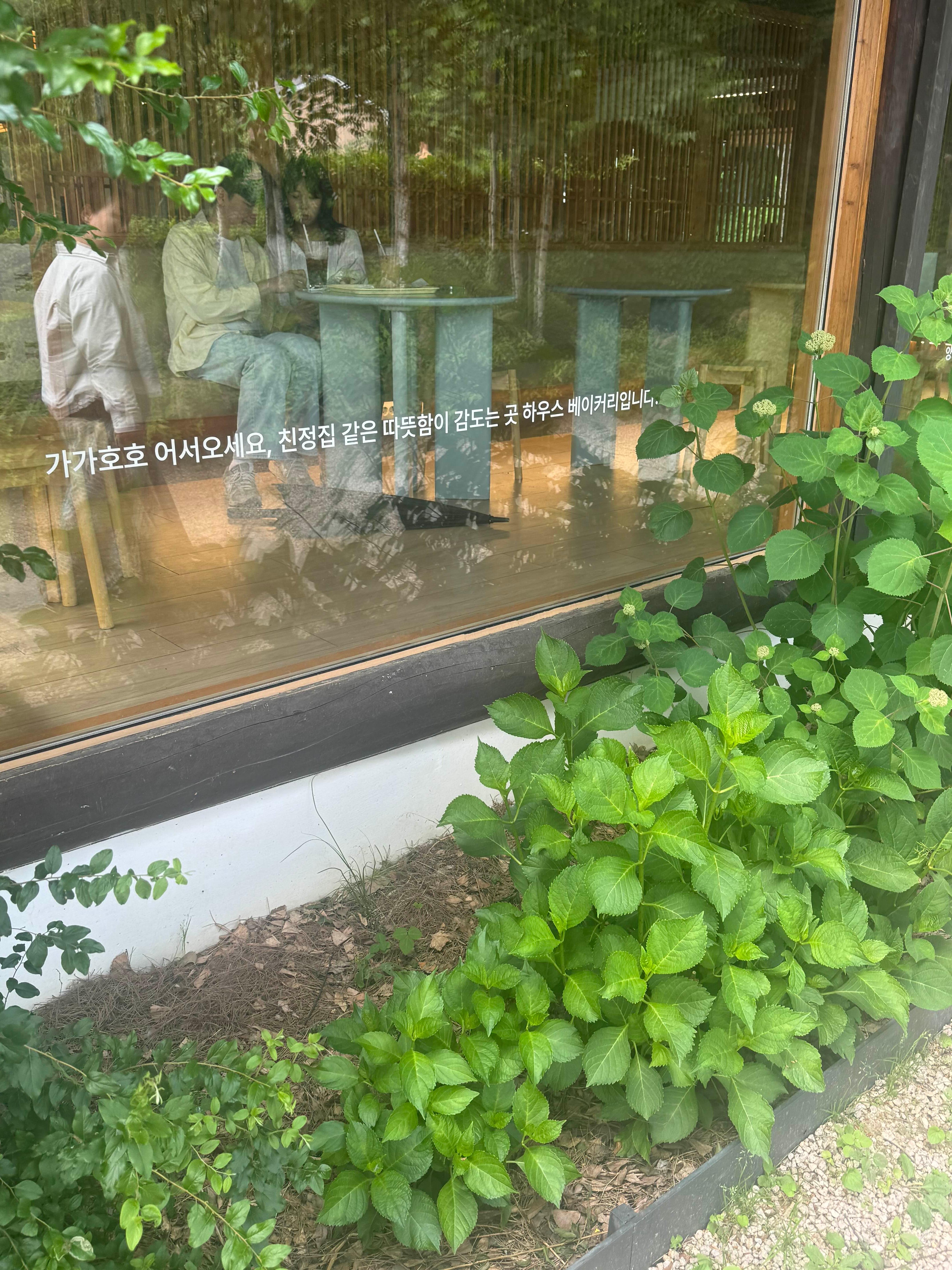 통유리창 너머로 산과 초록이 가득한 풍경이 펼쳐지고, 조용하고 여유로운 느낌이 정말 좋았다.