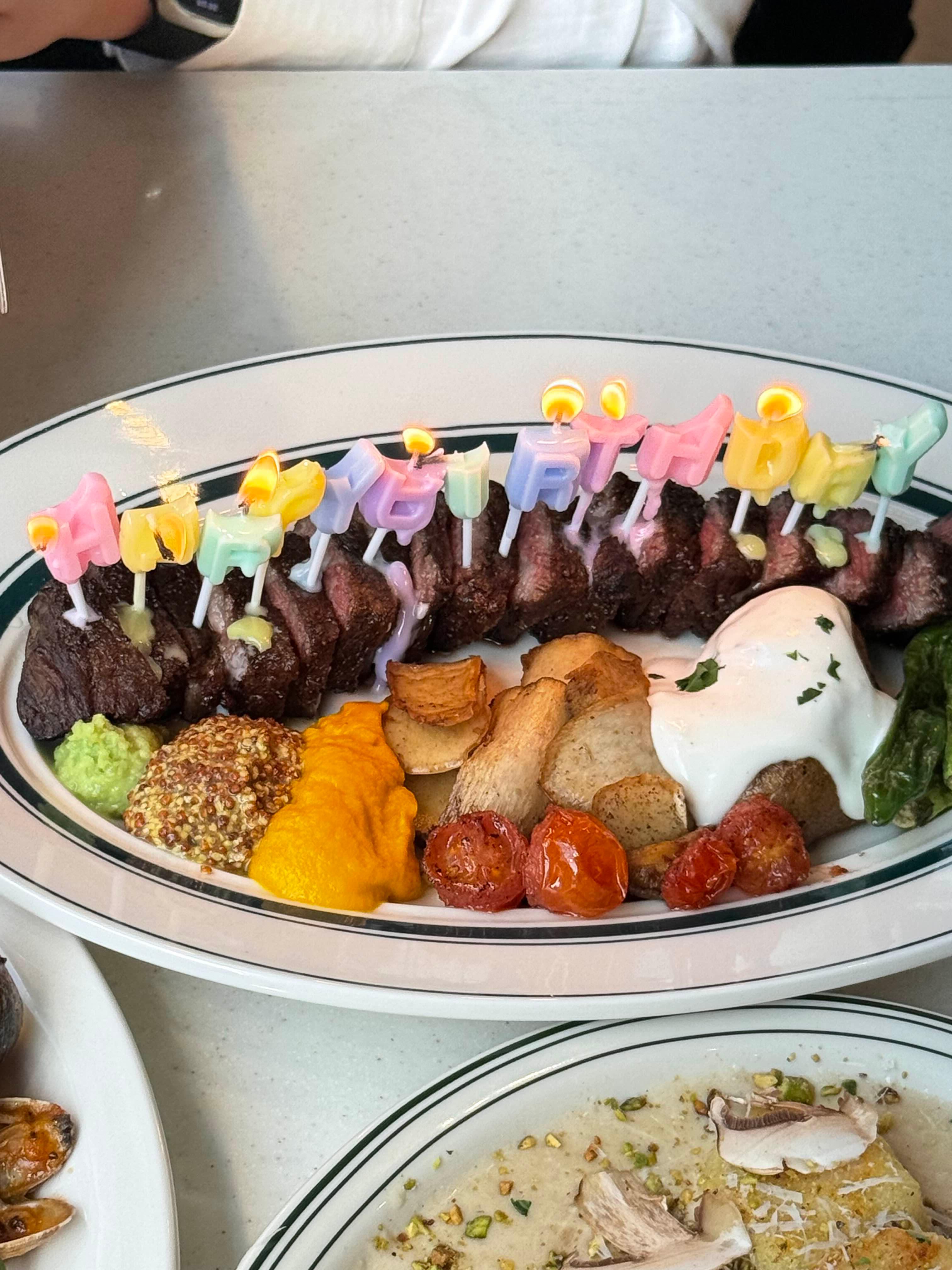 스테이크 위에 ‘HAPPY BIRTHDAY’ 초까지🕯️