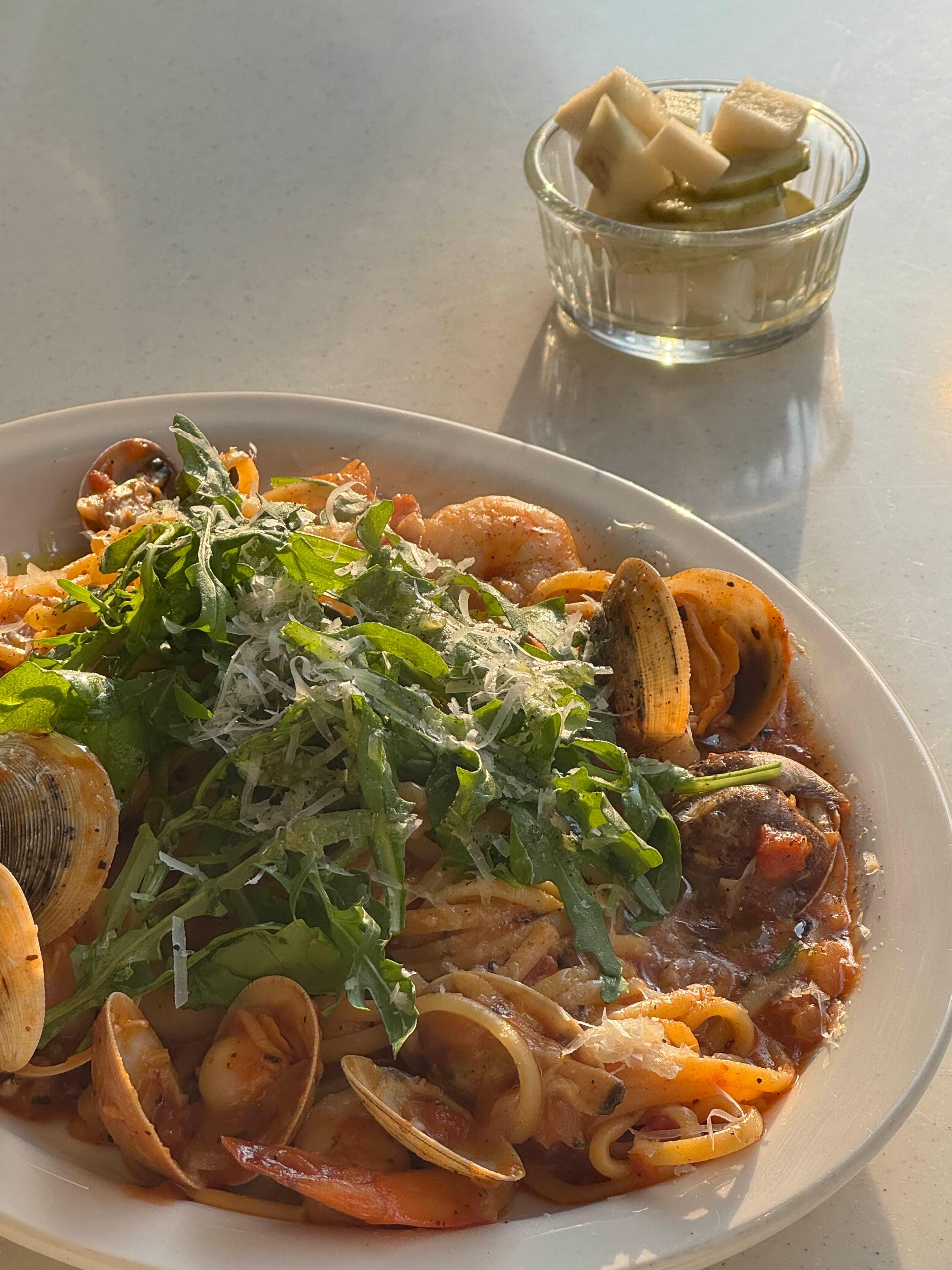 • 쉬림프토마토파스타: “토마토 베이스에 조개+새우가 가득🍝”